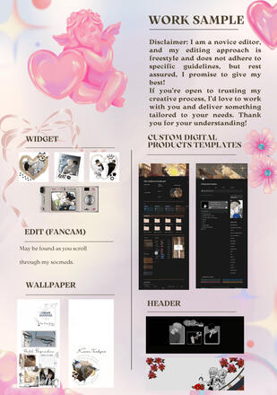 My editing approach is freestyle, meaning I create based on my creativity and intuition rather than adhering to specific styles or detailed guidelines. While I strive to make each project unique and high-quality, I may not be able to replicate certain styles exactly as I'm still a novice in editing.If you’re open to trusting my creative process, I’d love to work with you and deliver something tailored to your needs. Thank you for your understanding!*****Will Not EditI reserve the right to decline requests that fall under the following:Content that is offensive, discriminatory, or harmful in nature.