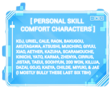 - black haze (if you know this one pls befriend me i can't be the only crazy one waiting for 10 years for this manwha to come back)(i have more but it won't all fit here so that's all i list down, but i'm an avid reader of manga/wha and webnovels so long they're a bit old like 2022 old i probably heard abt it)(if you people want me to recommend something to read my dms are open in my main, don't chat me in my back up bc i will most likely not reply)
